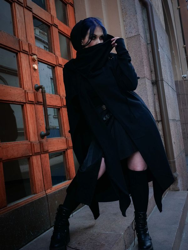 She finds beauty in the macabre and enjoys exploring the hidden corners of life. With its dark colors, her wardrobe accentuates the unusual with a hint of something sweet underneath, like a marshmallow hidden in an Oreo cookie.
